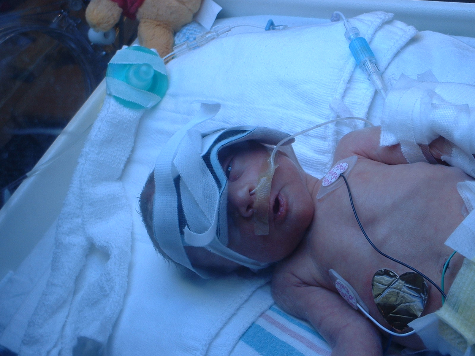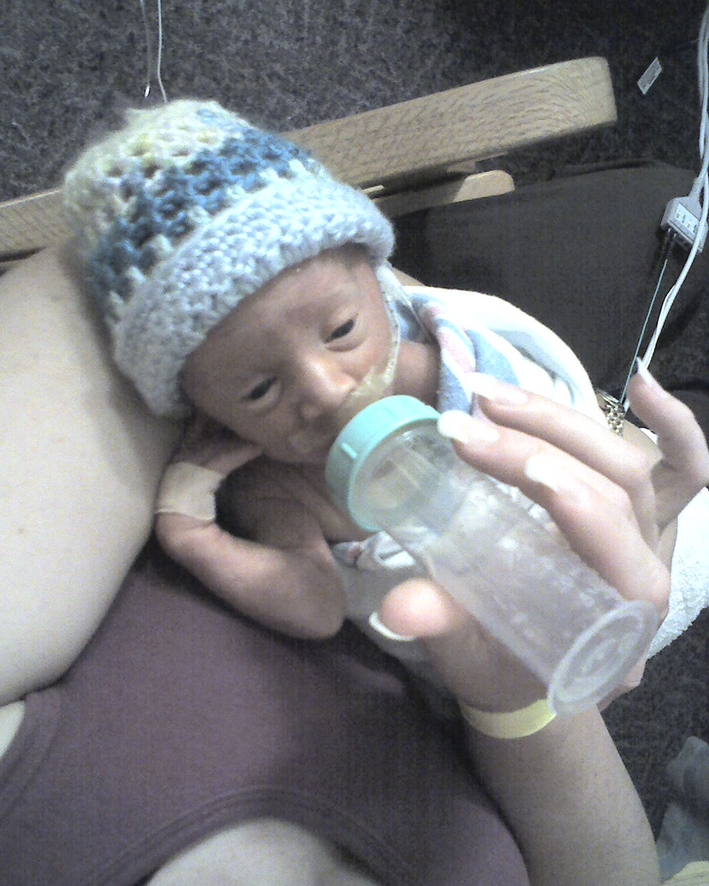 Today was more of the same except that they started him on formula again. Small amounts only because we're trying out his tummy to see how it handles the food, but he's scheduled for every three hours and we saw him get 3 feedings today with no spitting up. There was a bit left in his tummy when they checked each time, but they noted it was 'mucusy' so that may just be stomach fluids, not formula. It sounds disgusting, but it's another of those things that we're learning about babies.