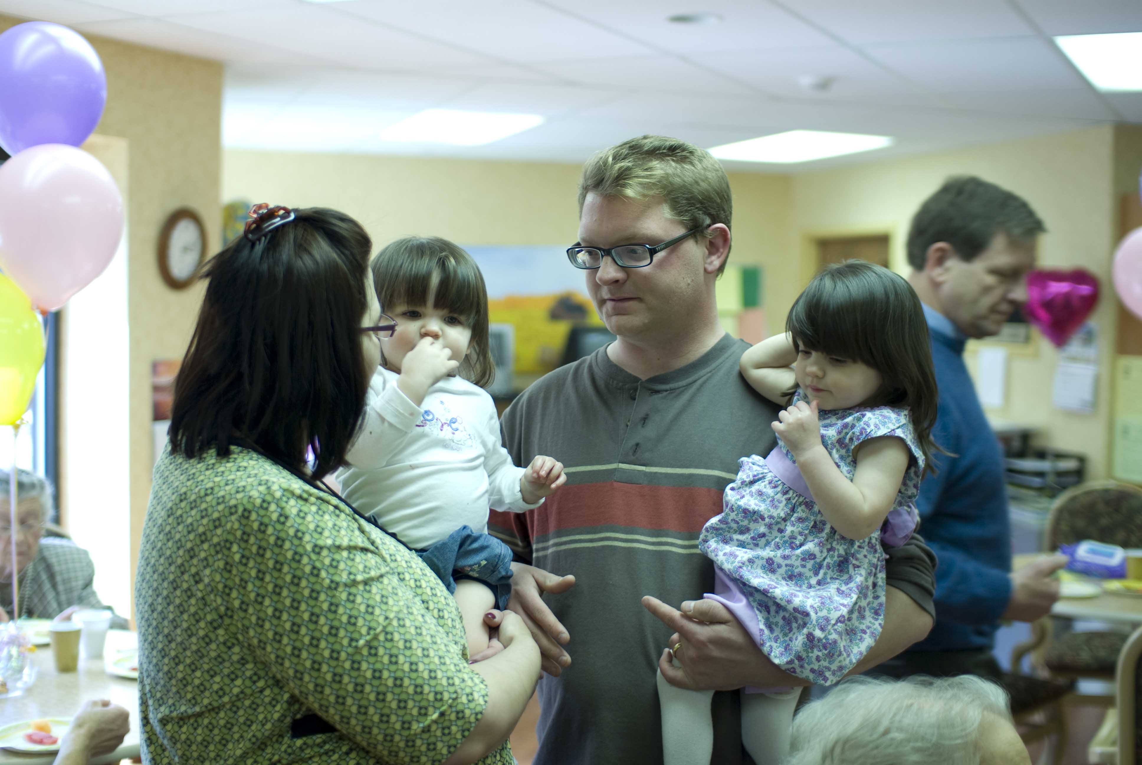 April 2 was Mommy's Grandma's 90th birthday and the family had a party for her. It was the first time Aidan met much of the family and friends of the family. There were many new babies in the family so Aidan was not alone. Grandma Kathy and Grandpa Bob spent much of the time holding Aidan and looking proud.