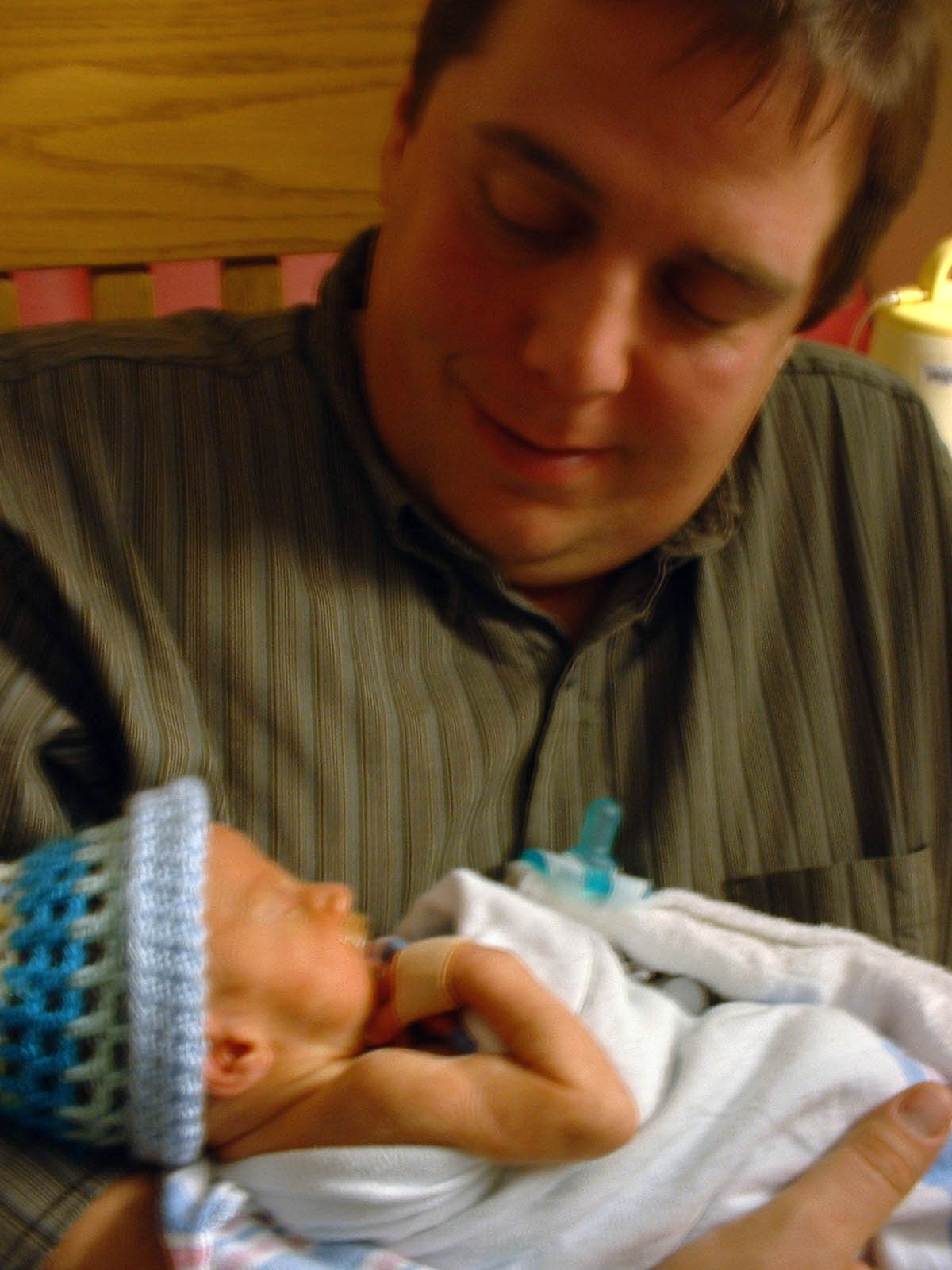 Some special testing last week found that Aidan has some serious reflux problems. Another one of those things that often happens to preemies. His stomach acid backs up into his espohagus and burns. Imagine your worst heartburn and you get an idea. It causes enough pain that it can disrupt heartbeat and breathing. This means it may be the root of the problem for why he's been having the problems with coordinating breathing with suck and swallow reflexes. It often hits while eating or just after. He's on Prevacid now to hopefully stop this and most preemies outgrow this within the first year.