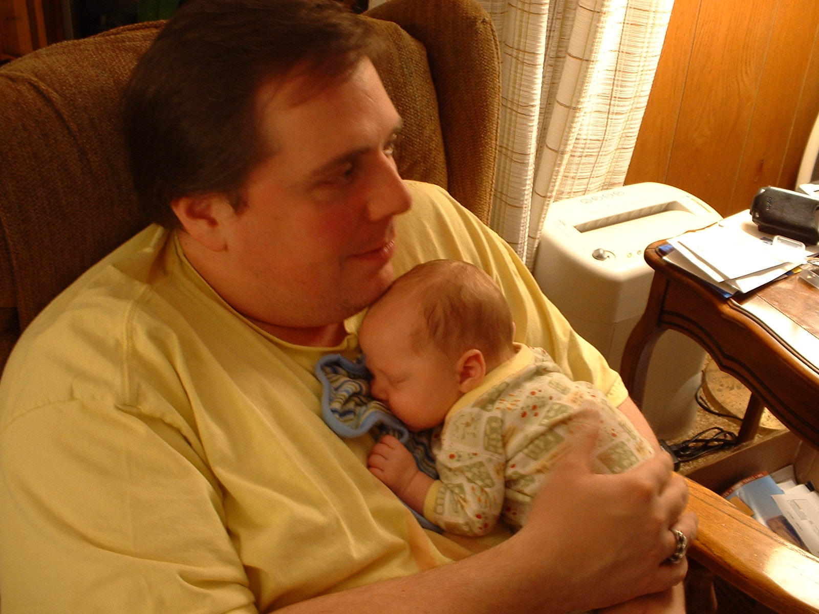 Otherwise the news has been good. Aidan is now up over 8 pounds. He's eating quite well and staying awake for longer periods during the day. He's still a little anemic, but his blood cell count is on the rise and he's scheduled for a couple more shots of Pro-Crit this week to help kick his bone marrow up to normal cell production levels. After we fix this, the doctor says he'll consider Aidan a normal healthy child.
