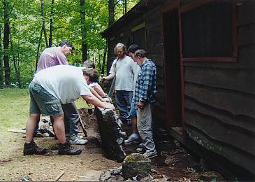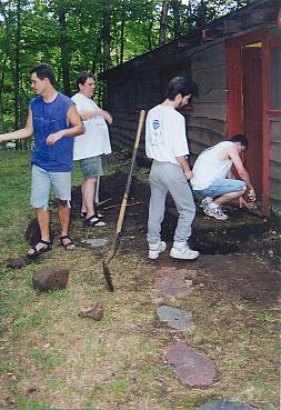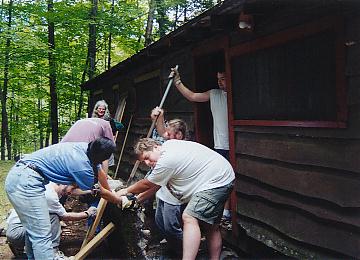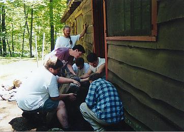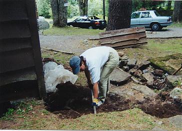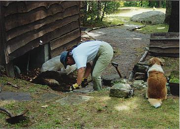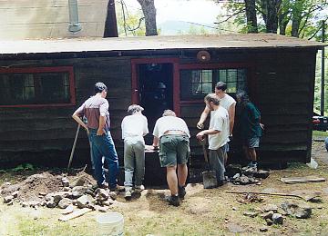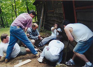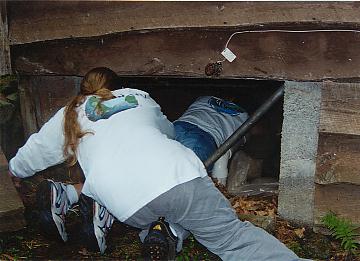 Examining the back stoop and kitchen floor |